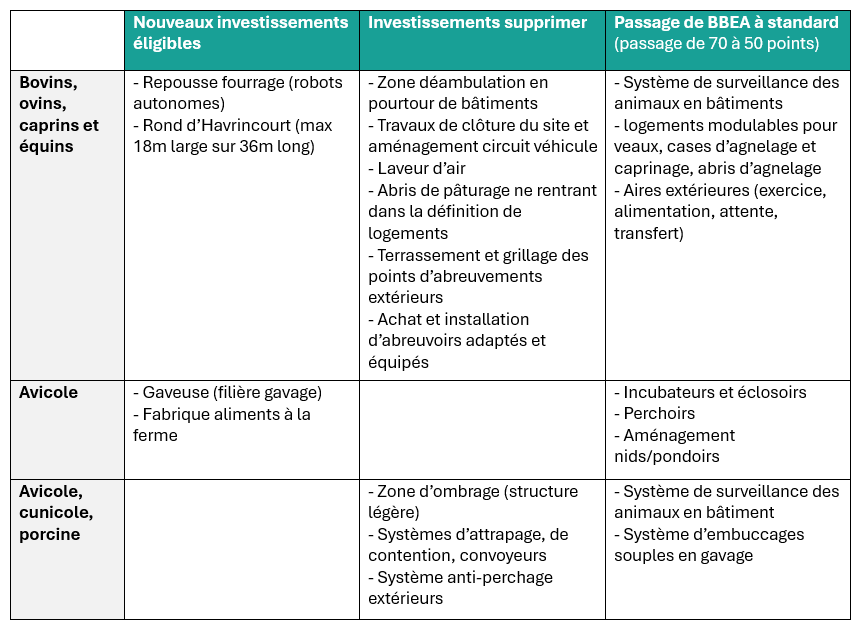 Évolutions des investissements éligibles au PCAE Élevage